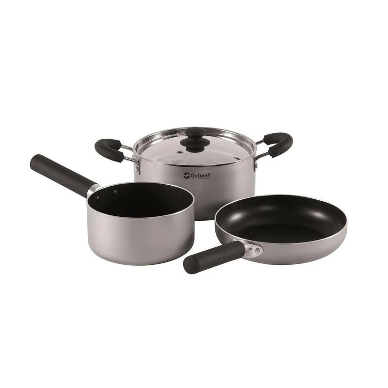 Batterie de cuisine de camping Outwell en aluminium avec revêtement anti-adhésif.
