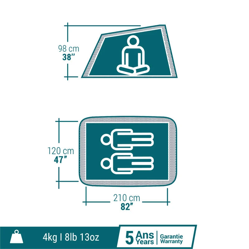 Quechua Tente De Camping – 2 SECONDS – 2 Places – Fresh & Black