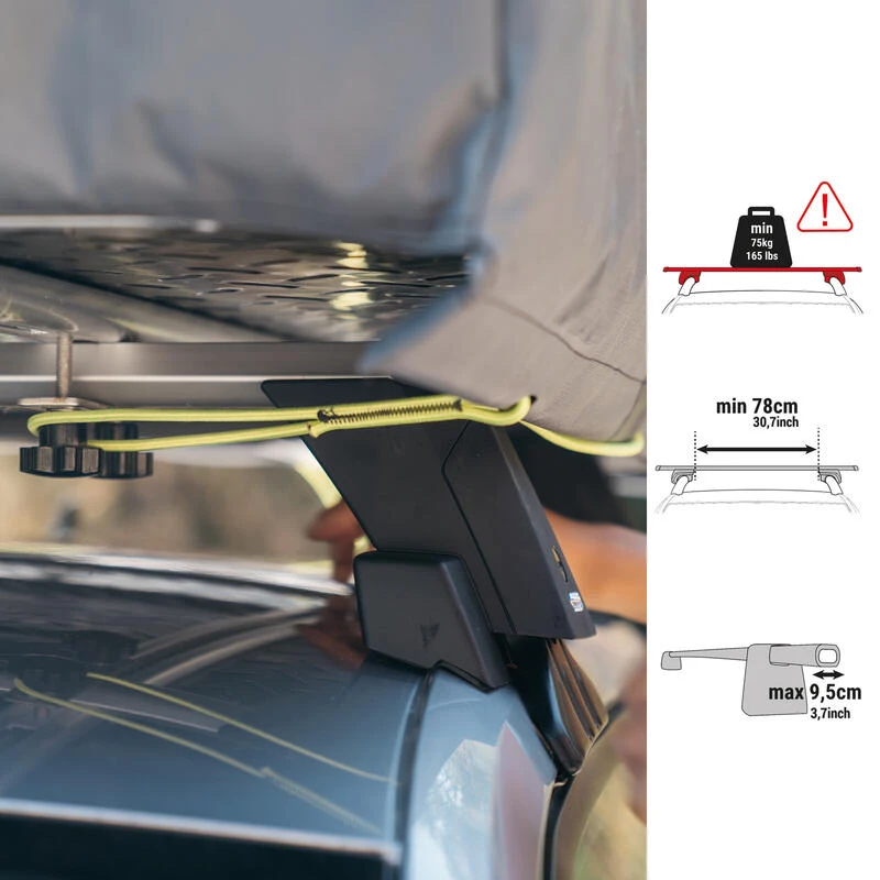Pas d’inquiétude, une fois installé et à l’arrêt, vos barres de toit pourront supporter la tente de toit, ainsi que le poids des personnes à l’intérieur (200kg au total).