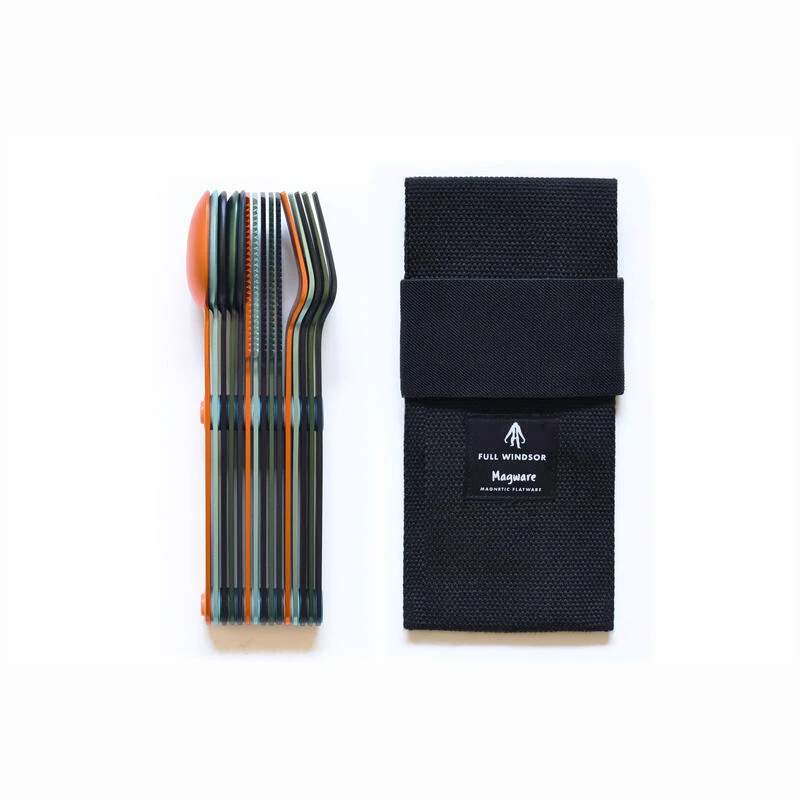 SET COMPLET DE 5 JEUX DE 3 COUVERTS MAGNÉTIQUES CAMPING EN ALUMINUM DUR – ÉTUI